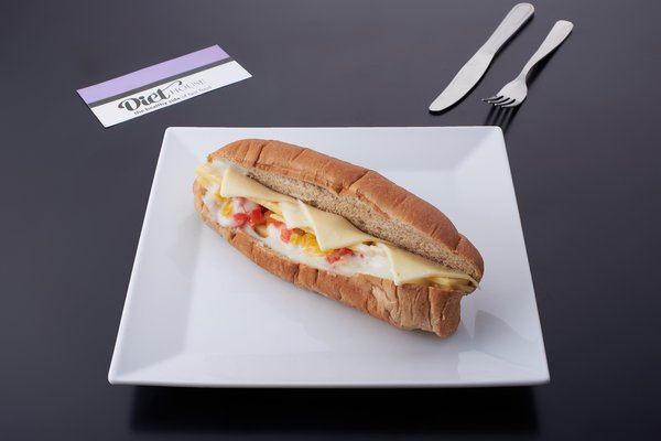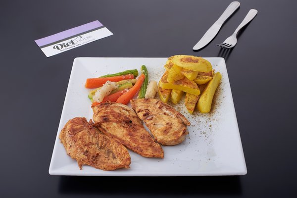 310 calories, 42 protein, 38 carbs, natural chicken, mushroom, colored pepper, light mozzarella, thyme, Diet House special sauce
