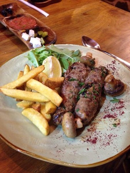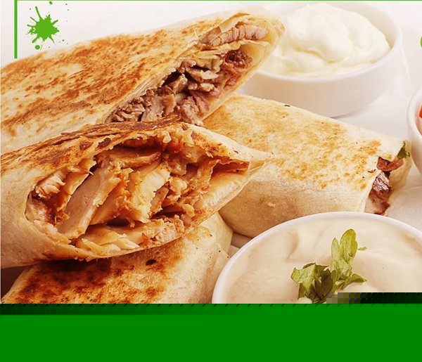 Meat ShawermaServed with fries, garlic dip, pickles and Syrian bread |