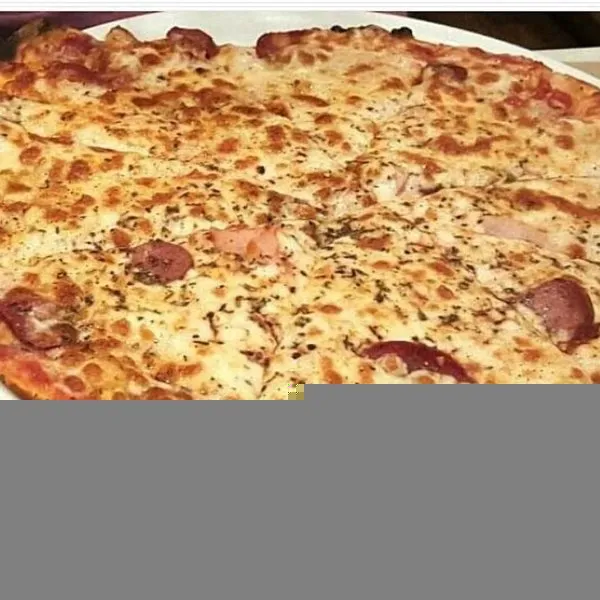 Beef salami, oregano, mozzarella, hot sauce and tomato sauce