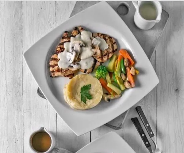 Grilled chicken, fresh lettuce mixed by caesar dressing with parmesan cheese