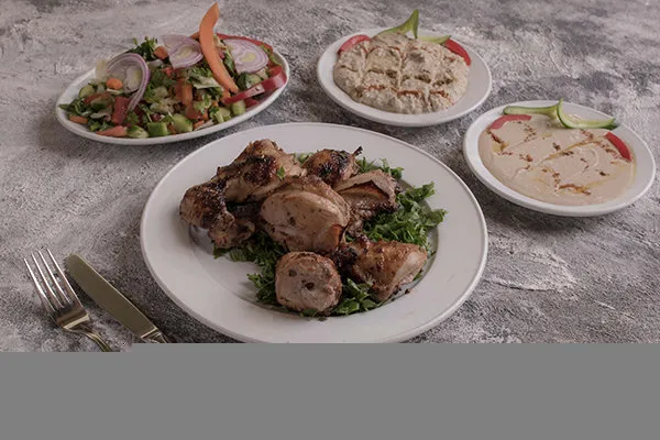 All dishes are served with rice, 2 salads, bread, drink, 10 L.E to add mini vegetables or mini soup