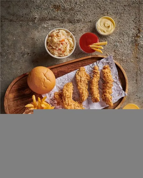 Crispy chicken breast strips with special spices, 3 pieces served with fries, 5 pieces & 5 pieces combo served with fries & coleslaw