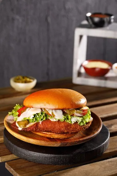 Beef patty, mushroom, black pepper sauce, caramelized onion and emmental cheese