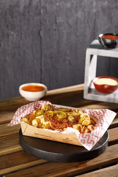 Cheese, chili con carne and jalapeno