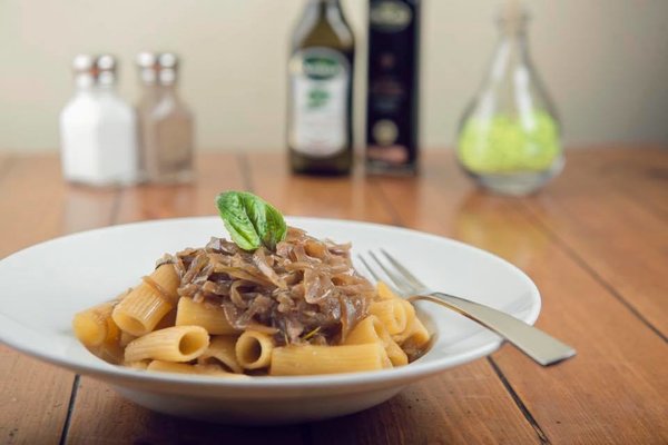 Homemade tagliatelle pasta with roasted garlic and walnuts