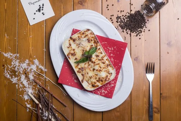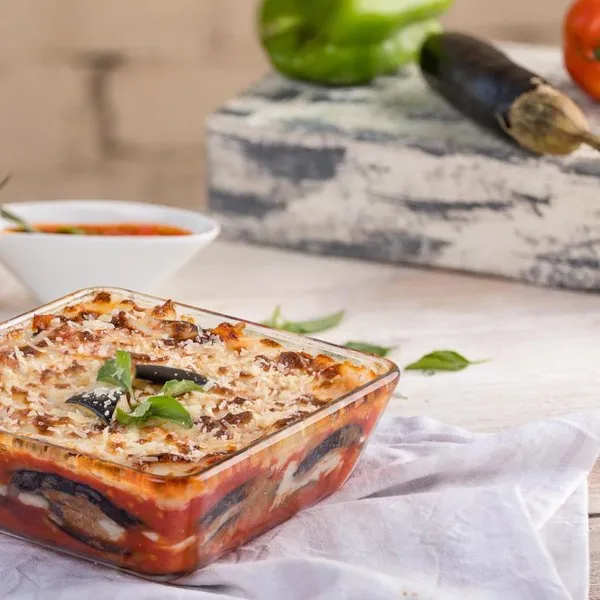 Tomato sauce, eggplants, buffalo mozzarella and parmesan cheese