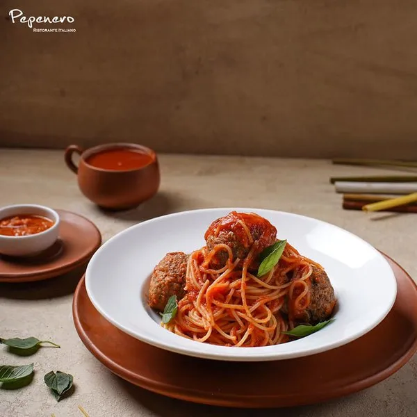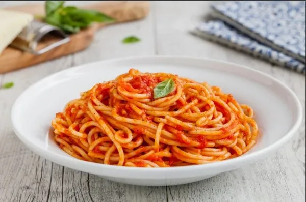 Spaghetti topped with classic Italian tomato sauce