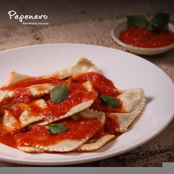 Homemade ravioli topped with classic Italian tomato sauce