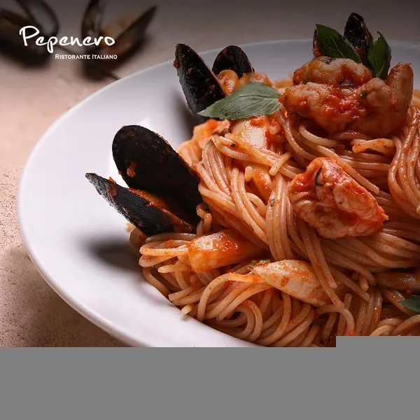 Spaghetti with shrimp, calamari, mussels