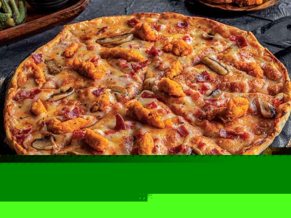 Fried chicken, pepperoni & hot buffalo sauce, mushrooms