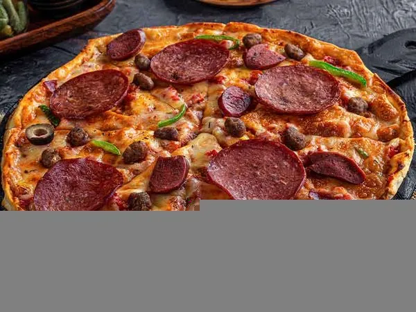 Pizza sauce, mozzarella cheese, vegetables, pepper, mushroom, olives & layers of cheese, Club size: 35 cm x 17 cm Pizza club The size of Solo Hero is 28 cm * 17 cm With each solo hero, one free sauce out of 10 sauces and coleslaw The family size is 40 cm * 40 cm With each family pizza, 2 sauces and small fries for free