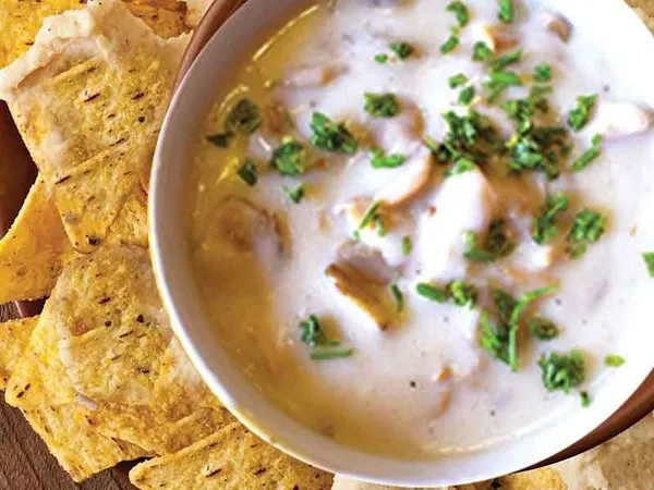 Nachos with spices served with your choice of cream or mushroom sauce or spinach sauce, spinach special cream pesto