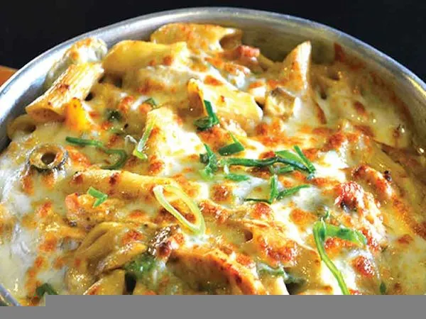 Chicken strips, cream sauce, spinach, fresh mushroom, mozzarella ,penne
