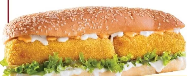 Crispy chicken strips covered with mayonnaise, smoked turkey, lettuce, pickled cucumber and cheddar cheese, served in baguette bread