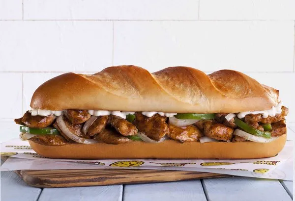 Layers of grilled chicken spiced with hot Mexican salsa, green pepper, onion, carrot served on a bed of mayonnaise, lettuce, pickled cucumber, spicy BBQ sauce served in brown bread