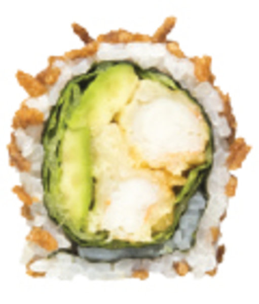 Shrimp, avocado, crab, crispy rice & sushi rice, stuffed with shrimp tempura and cucumber
