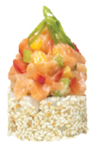 Mango, crab paste, shrimp, smoked salmon, nori, sushi rice & avocado, served with mango chunky sauce