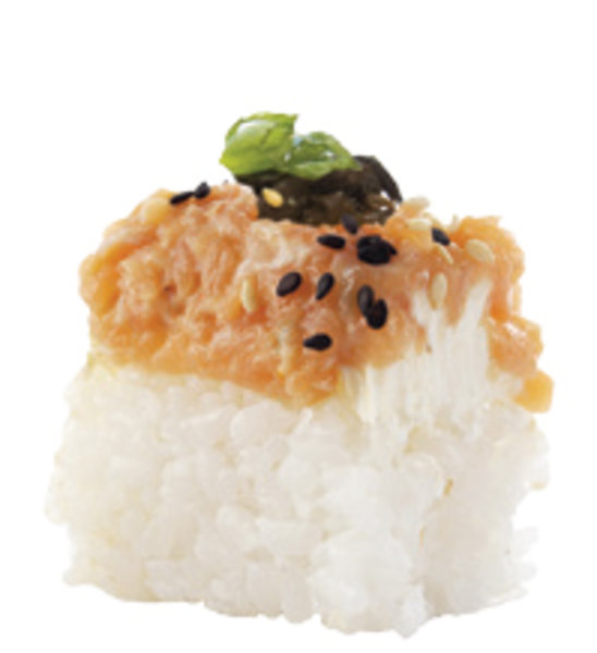 Tempura flakes, salmon, nori, Philadelphia cheese & sushi rice, served with teriyaki and sesame