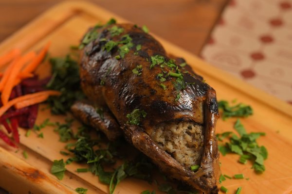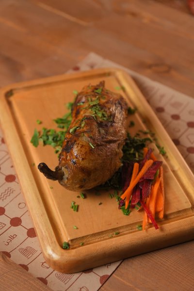 Stuffed with Egyptian khalta from rice, greens, olive oil, knuckle pieces