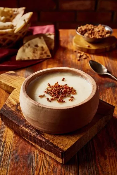With vinegar, garlic, tomato sauce, baladi bread, knuckle pieces