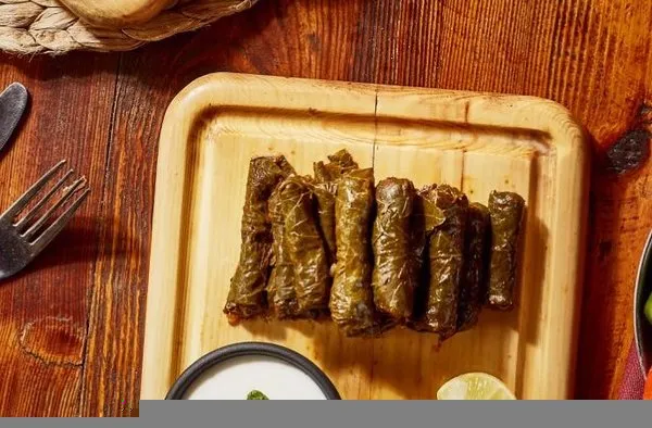Stuffed with Egyptian khalta from rice, greens, olive oil, veal mouza meat