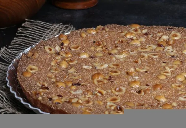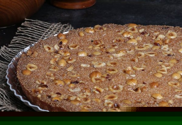Mix sponge fudge, chocolate, nuts, chocolate and cinnamon