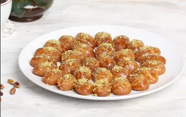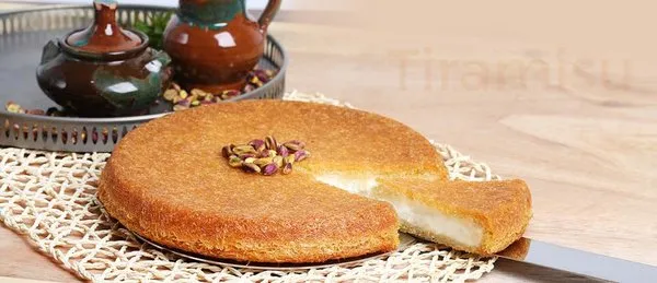 Piece of papaz cake with orange syrup, cream and apricot jam