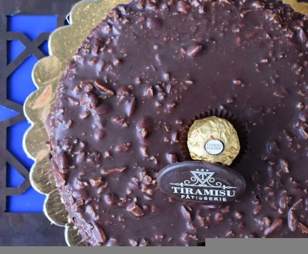 Chocolate sponge cake, hazelnut, cream chocolate mousse