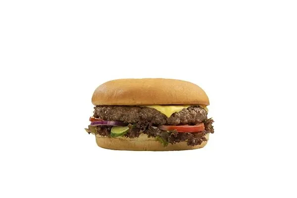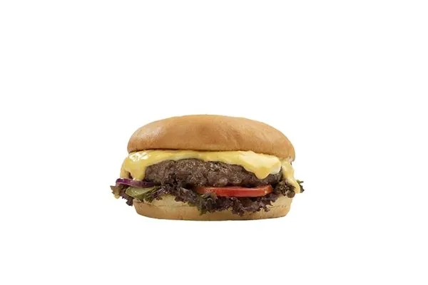 Homemade cheese burger with tomato, lettuce, onion, mayonnaise, pickles and queso sauce