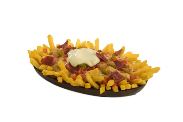 Fries topped with chili meat, cheese, pico de gallo and sour cream