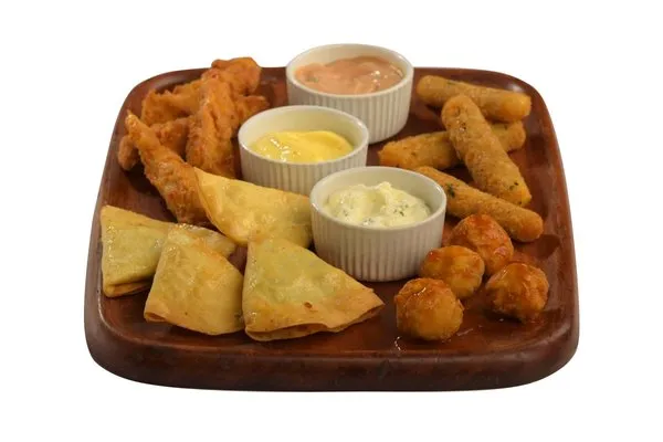 A generous mix of our in house special signature of crispy mozzarella, loaded with buffalo chicken, cheese steak triangle and chicken tender, served with 3 sauces
