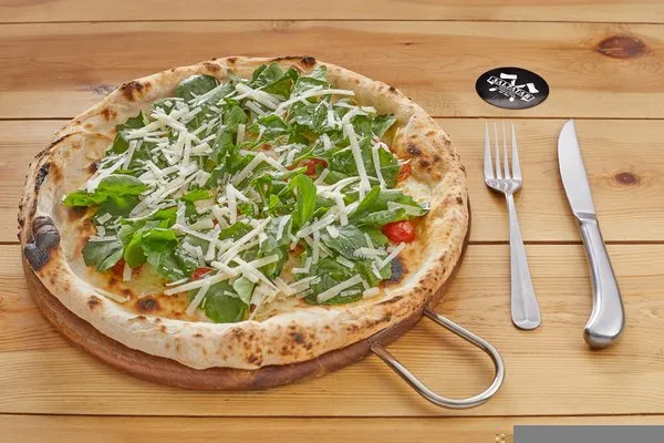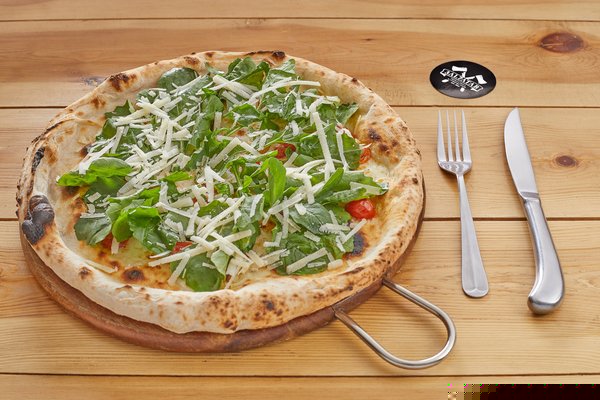 Cherry tomato sauce, buffalo mozzarella cheese, arugula & parmesan cheese