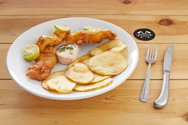 Bustan aquaponics farm raised tilapia in a tempura butter, served with homemade chips