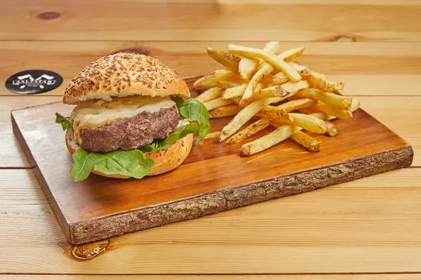 150gm of home ground beef, arugula & scamorza cheese (smoked mozzarella cheese), served in a brioche bun