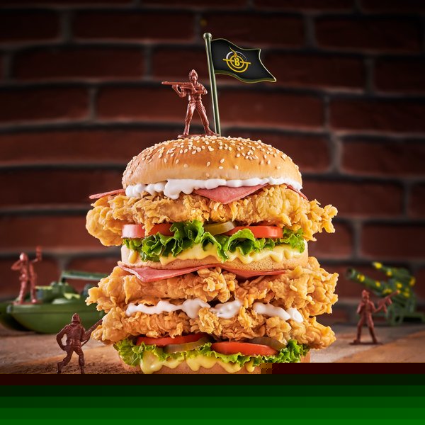 Double sandwiches contain 2 chicken pieces, triple size contains 3 chicken pieces