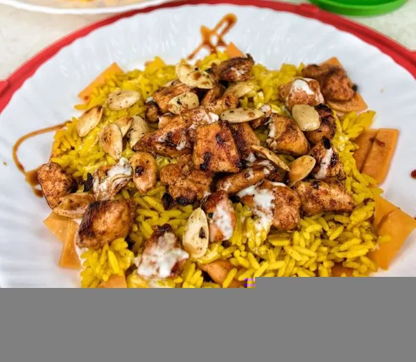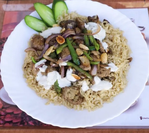 Chicken FattehChicken pieces, rice, yogurt, garlic, tehina and samna |
