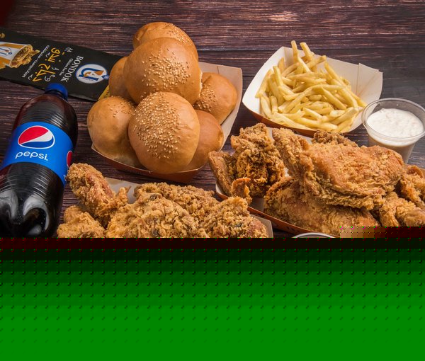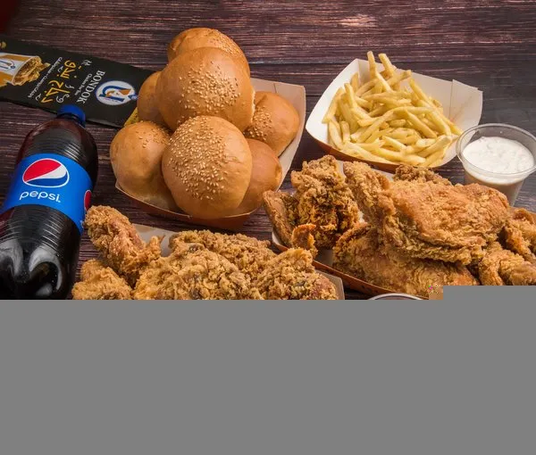 Ramadan Meal2 chicken pieces, potatoes, basmatic rice, pepsi, caiser, ketchup |