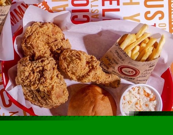 2 chicken pieces, 2 crispy chicken strips pieces, fries, coleslaw, rice and drink