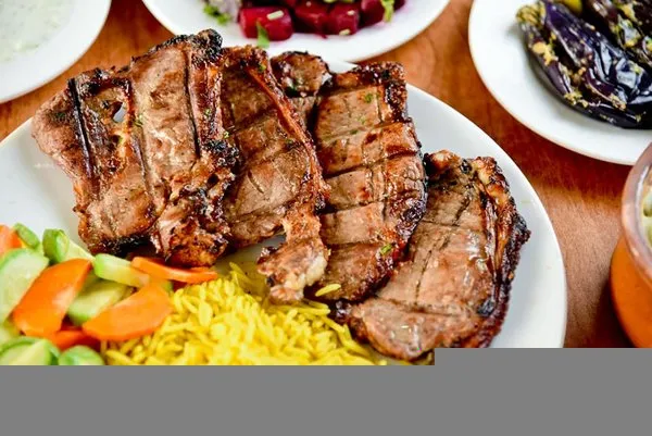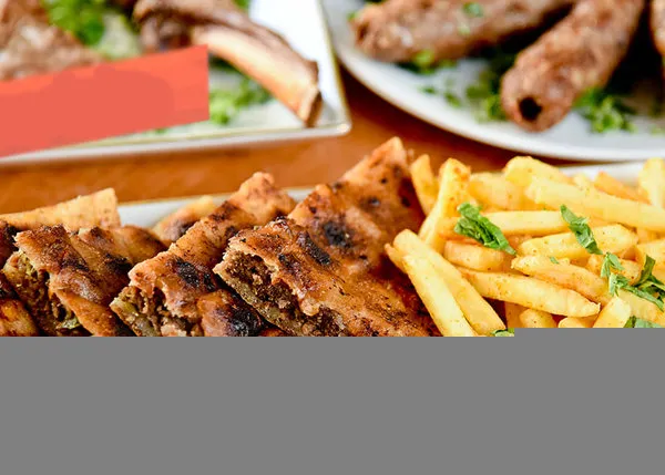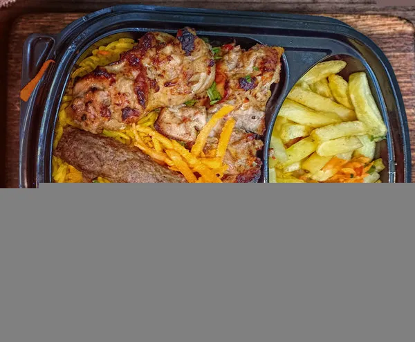 2 kofta, 2 tarb, steak slice, served with basmati rice, fries
