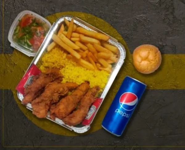 All meals are served with salad, rice, fries, kaiser and soft drink can