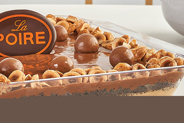 Layer of crispy biscuits, nutella, cream stuffed with walnuts, La Poire konafa othmanlya, maltesers, caramelized toffee