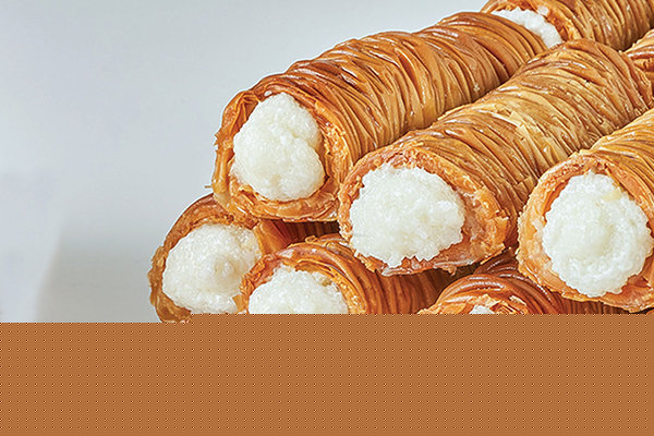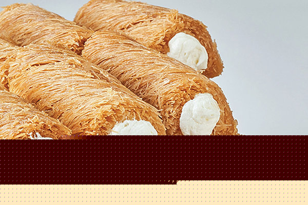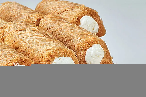 Konafa rolls with baladi samna stuffed with cream