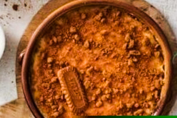 Konafa with baladi samna, lotus cream garnished with lotus biscuits