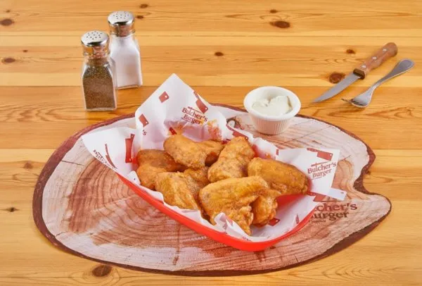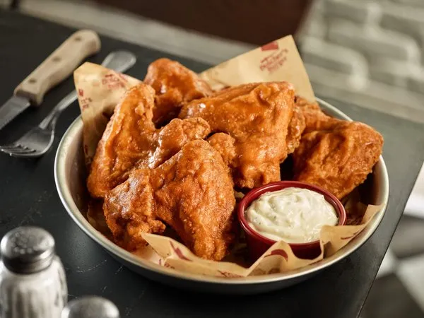 Wings with hickory BBQ sauce, served with ranch or dijon mayo