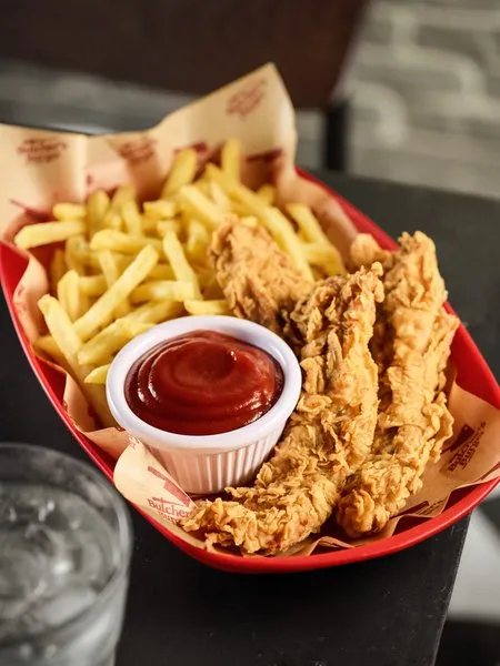 Fried chicken fillet, cheese, lettuce, tomatoes, pickles and BB sauce