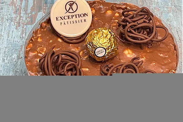 Chocolate konafa with nutella cream and kitkat chocolate sticks