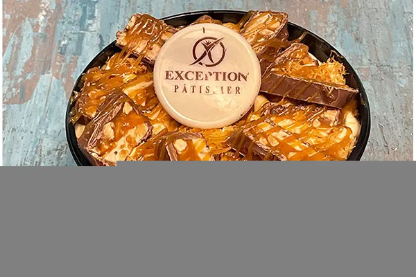 Konafa with caramel cream, chocolate pieces, snickers, hazelnuts and maltesers