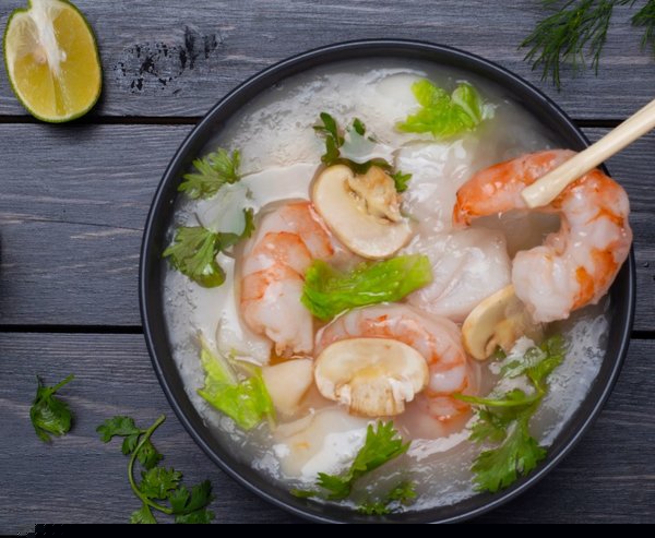 Cream soup with prawns and Chinese spices