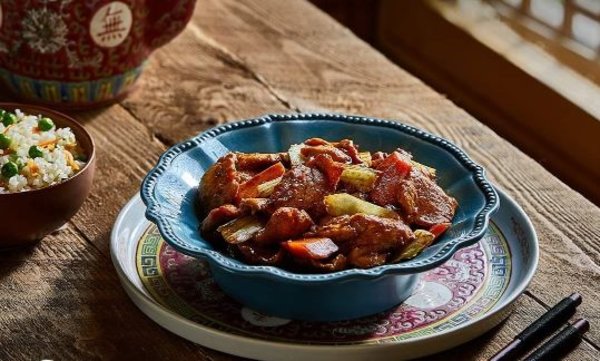 With peanut butter, soya and Chinese spices