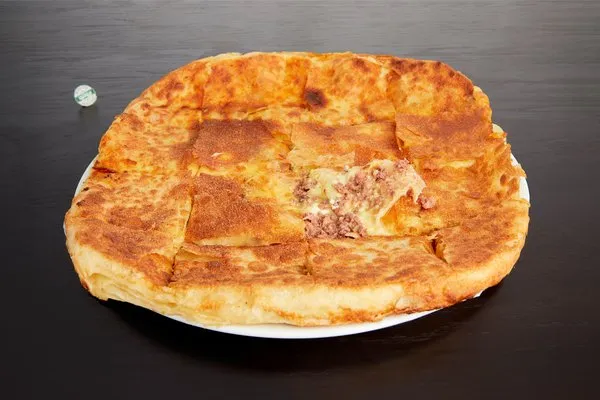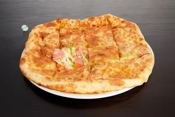 Mozzarella cheese, pepper, olives, sesame, black seeds